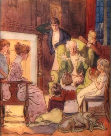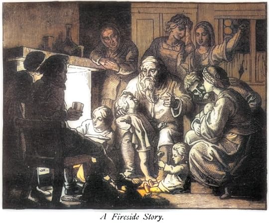 A while ago, I urged visitors to give me a stern glance of disapproval if I failed to blog more about the centuries-old tradition of sharing spooky stories by a winter fire. If you want to be persnickety about it — and no one should pass up the chance to be persnickety about something — the tradition works just as well around an autumn fire on a blustery evening or even a spring fire on a bone-drenching night. This custom is older than Shakespeare, drifted toward becoming a Christmas thing before Dickens pounced on it, and seems to have faded by the 1900s.