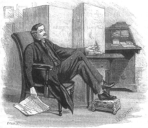 This illustration of Walter Dene is found in the Cornhill publication of the story.On a side note, in their next issue, The Literary World mentions that a reader had pointed out the two very different endings: the one in Twelve Tales and the one in Cornhill. I find this very perturbing. You see, I wanted to be the first to publicly announce that Walter Dene — unlike that wanderer in the Robert Frost poem — managed to take both paths that diverged in a yellow wood!