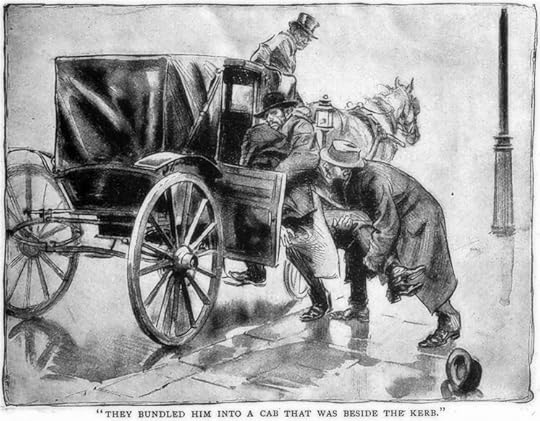 The abduction of Mr. Warren from Arthur Conan Doyle’s “The Adventure of the Red Circle” as illustrated in