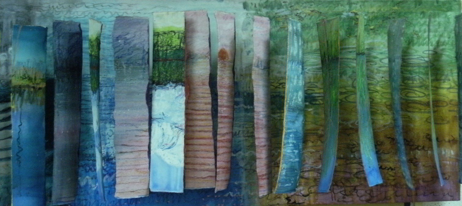 The idea of painting a river is something I have played with before. I will illustrate my other ideas in a future blog. This was a mix of ideas from a previous painting called 'Dance' about balancing good and evil which like this had 'moving' parts and played with the way colour works.