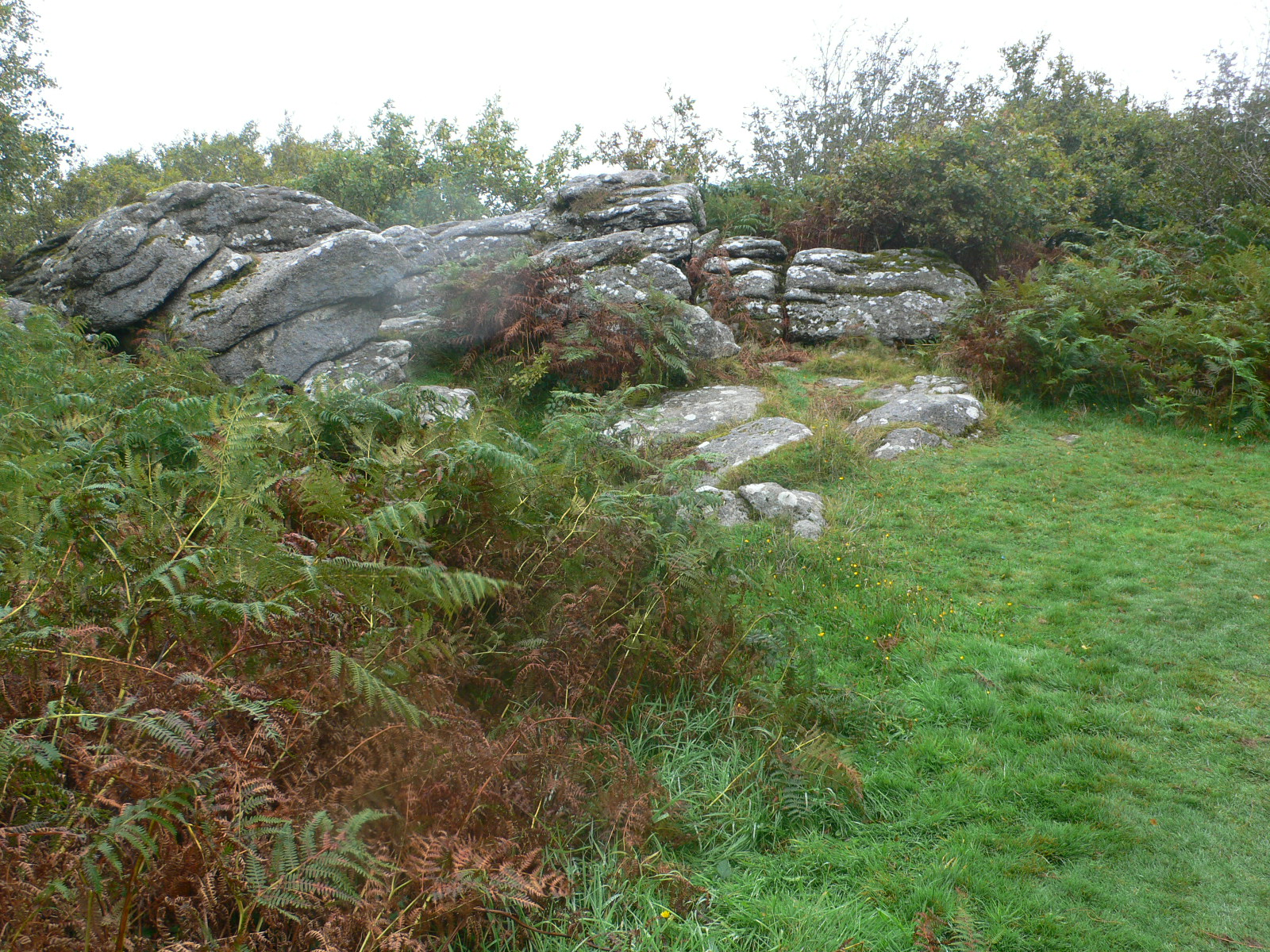 Crocken Moor, a rocky granite outcrop which is believed to be the centre of Dartmoor.The guardian spirit of the moor, Old Crocken, rides out from here on a skeleton horse. On dark and stormy nights he rides to Wistmans Wood and releases the hounds and Dewer to hunt lonely travelers.Any meeting with him forebodes bad luck.