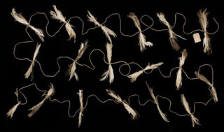Witches Ladders have been in use for hundreds of years though not many examples remain from that time. One such ladder can be viewed in the Pitt Rivers Museum in Oxford. This is a long length of knotted cord with different coloured feathers woven through out its length, its use would have been to cast spells and more often than not used for a death spell.But they can be used for a more benign purpose; the following spell using a Witches Ladder is for protection, abundance and happiness. Much nicer!