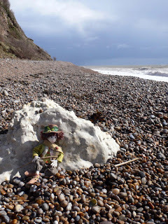 Tired of being blown around by the cold wind Gulliver is having a rest behind one of the rocks on the beach