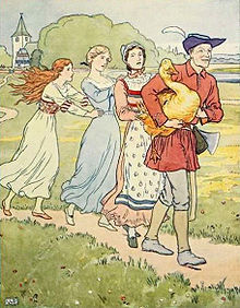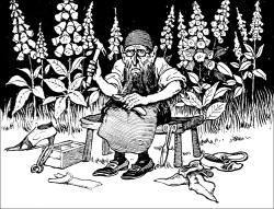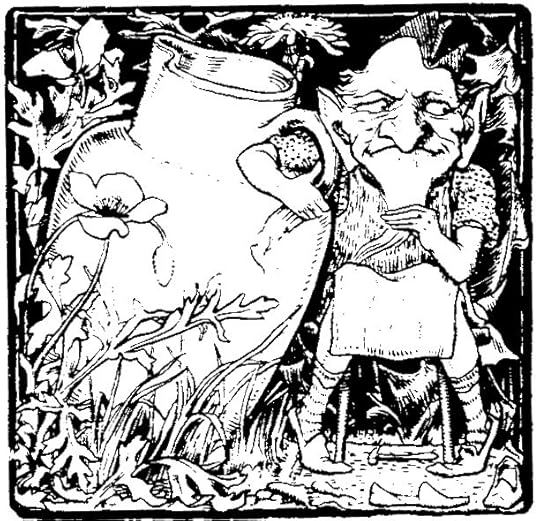 You watch your cattle the summer day,Sup on potatoes, sleep in the hay; How would you like to roll in your carriage. Look for a duchess's daughter in marriage?Seize the Shoemaker--then you may! "Big boots a-hunting, Sandals in the hall, White for a wedding-feast, Pink for a ball. This way, that way, So we make a shoe; Getting rich every stitch, Tick-tack-too!"Nine-and-ninety treasure-crocksThis keen miser-fairy hath,Hid in mountains, woods, and rocks,Ruin and round-tow'r, cave and rath, And where the cormorants build; From times of old Guarded by him; Each of them fill'd Full to the brim With gold!III.