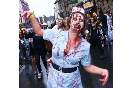The Dead will be roaming the streets in Glastonbury on 25th October.The zombies will be gathering outside the Crown Inn at the Market Place from 3.30 pm. At 5pm they will be unleashed on the defenceless inhabitants of Glastonbury.