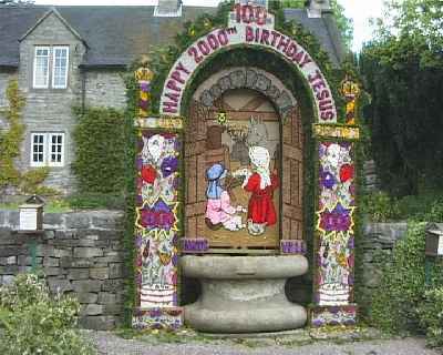 It is especially associated with the Derbyshire villages. At Tissington and Buxton the wells were dressed with large framed panels featuring biblical subjects, at Buxton the whole town used to take part in the procession, the well was blessed and a Festival Queen was crowned. In fact Tissington used to boast that the festival had been held without interruption since the drought of 1615, although some say it is from the time of the Black Death, the wells never failed and farmers brought their cattle ten miles to drink at the wells. At Endon the two wells were dressed on the 29th May and the May Queen crowned on the same day, this was a blending of the ancient practice of well worship, may day rites and christian beliefs.