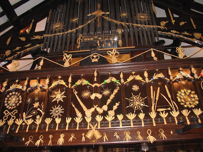Examples of corn dollies decorating the church at Siddington near Macclesfield