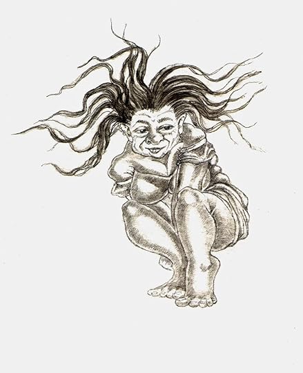 The larger Trows have a nasty habit of carrying off young girls and midwives.The Trows of Shetland are very keen dancers, their lack of grace is made up for by their great enthusiasm.There is a story of a Trow woman who gatecrashed a couple's wedding, unable to watch the festivities any longer without joining in she burst into the hall and began dancing in the usual henking fashion of the Trows.Squatting down and holding her hands tightly between her thighs and calves, she hopped up and down the hall impatiently waiting for one of the mortal men to join her. When no one volunteered she became rather peeved and began whirling around and around chanting:'Hey, Co Cuttie; and ho co CuttieAn wha' thee dance wi' me co CuttieI luke aboot an sae naeboodySae I'll henk on mesain, co Cuttie'Until breathless she gave up on the mortal men as a bad job and vanished.
