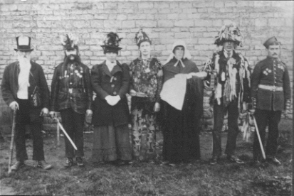 Mumming was also popular around Christmas time especially on Christmas Eve. Popular throughout the country and usually enacted simple stories such as King George who usually kills the Turkish Knight or the King of Egypt or some such villain. St George was the original hero but then appeared as King George, probably influenced by the reigns of the four Georges. He was usually responsible for the death of another character, usually the comic relief, but all was well at the end when a Doctor would appear and restore life to all the characters in the play.The mummers usually followed this simple ethos of good triumphing over evil or it was the rebirth of spring at the beginning of the year. Originally pagan in origin this has been performed for at least eight hundred years and is now the only example of pre- reformation folk drama left in this country.The Troupe of Mummers would walk around the district visiting various houses along the way and performing in their play in the kitchen or hall of the residence, probably imbibing many pints of cider and beer along the way. So by the end of the evening many of the verses and songs would have been rather rude!