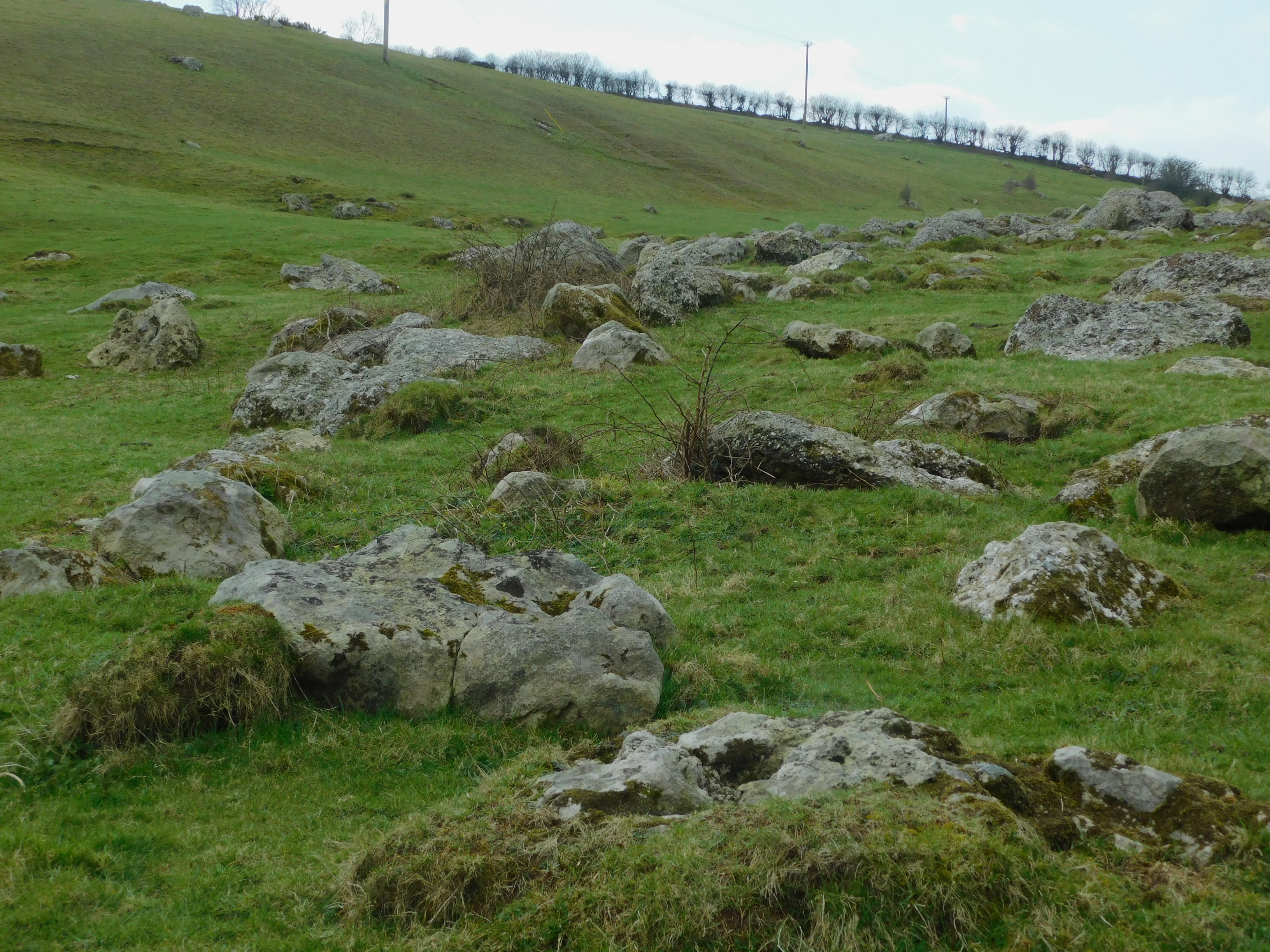 The giants, during a particularly violent altercation, instead of coming to blows decided that they would settle the disagreement by having a throwing competition. The winner would be the giant who could throw the most, the farthest. They each scooped up a handful of boulders from the hillside and took turns to hurl them as far as they could down the valley. The grassland soon became littered with hundreds of boulders as they continued for days until they finally, exhausted, gave up.