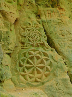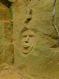 The soft stone in Shute's Lane has been carved over the last few decades by passing visitors. The results are quite amazing and well worth a visit.