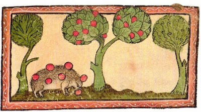The poor hedgehog not only being wise and capable of finding hidden treasure was also regularly eaten in years past. Traditionally a Romany favourite, wrapped in clay and put on the fire. The clay is cracked open when done and peeled back along with the prickles and skinApparently its a delicious, firm, white meat but quite fatty....