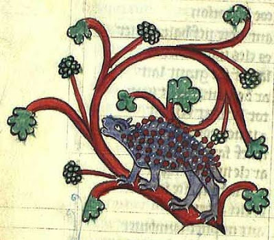 The Roman author Pliny the Elder suggests that they collect grapes in this manner in his work Naturalis Historia and from the 13th century onwards this image figures largely in illuminated manuscripts.