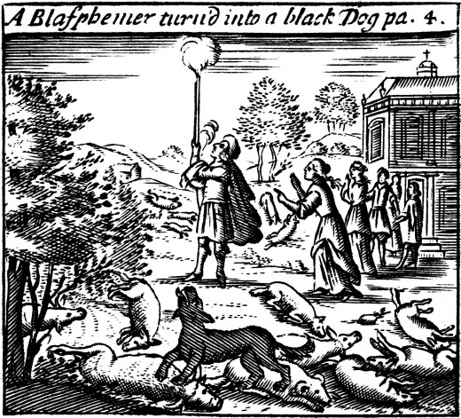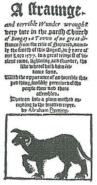 Black dog of BungayAll down the church in midst of fire, the hellish monster flewAnd, passing onward to the quire, he many people slew'