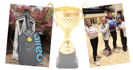 Because the win here is that we are participating. We are getting ourselves out there. The medal on the left is an actual winning medal for my pickleball team in our league last summer (we were actually the champions!). Our captain bought these in a very light-hearted fashion but I have kept it around because it signifies way more than beating beginner/intermediate middle aged women at pickleball. It signifies me being willing to look stupid learning a new sport in my late fifties. It represents all the other delightful people I have met learning that sport. It reminds me that I didn’t quit when I realized 99% of the women were former tennis players and I was not. It represents the discovery of a whole new fun community I would not have otherwise met.