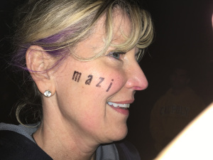 Those of us with blond hair woke up to pink bangs, the red paint that stuck on our hands ending up somehow in our hair (I liked it, wished it had lasted longer). We also woke up to blackened pillows because we used eye black to paint ‘mazi’ on one side of our faces and a heart on the other.