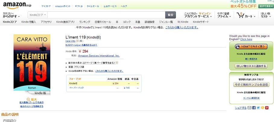 http://www.amazon.fr/L%C3%A9l%C3%A9ment-119-Cara-Vitto-ebook/dp/B00CS7O6S0/ref=zg_bs_1382058031_30