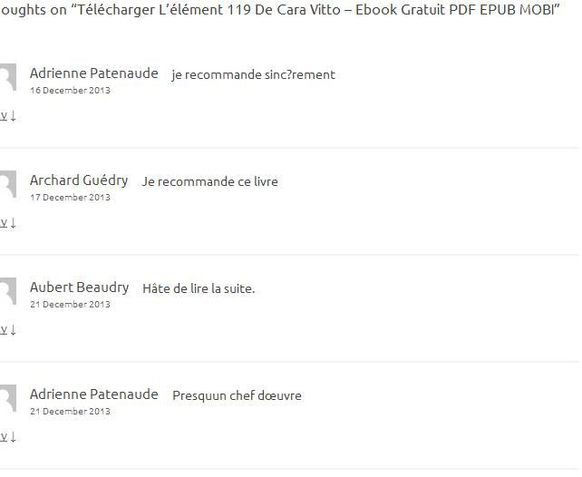 Les lecteurs des sites de téléchargements gratuits semblent bien plus réactifs que les lecteurs Amazon…je ne sais pas combien d’ebook ont été téléchargés via ce canal, mais 6 commentaires ont été déposés ! Et des commentaires très sympathiques !