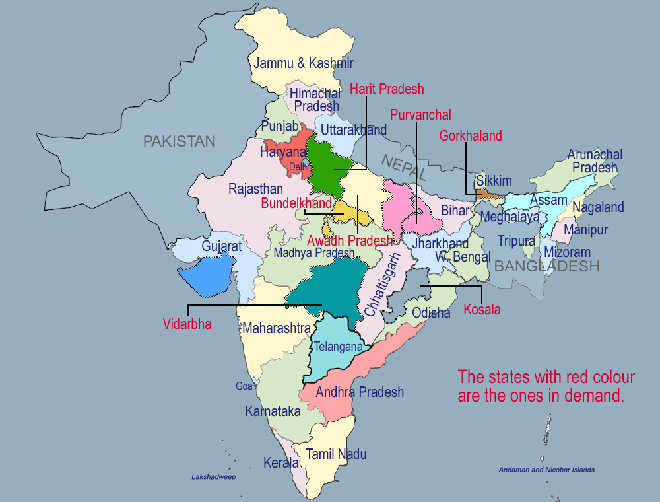 550 princely dominions were integrated into the Indian Union in 1956 and then new states were created on linguistic basis. And then the politics started…….Telangana- They say now it will be easier to lead the place to prosperity. Have they studied the condition of the other new born states: Utrakhand, Chhattisgarh and Jharkhand…..??? All the states are almost at the same level as they were with their mother states. No one has fared exceptionally great. If you talk about the division of prosperous Punjab, which happened many years back; it still remains an affluent state. So, you can’t tag its wealth to its division. Saying all this, doesn’t mean I am against smaller states. I believe smaller states are easy to develop. But here the division isn’t meant for development; infact it’s only politics, they are least concerned about the prosperity of the society. If it isn’t for politics, they wouldn’t be waiting for these issues to heat up till they blast and then act. If these politicians really want to work positively, then the first state which needs a division is Utter Pradesh, then Madhya Pradesh and Rajasthan. Why they are not thinking about that; but no, they will wait for the issue to become more severe, they will wait for bloody protests; they will wait for the innocent killings, then they will divide the state on the name of development. And we, the MANGO people, as always will believe them.