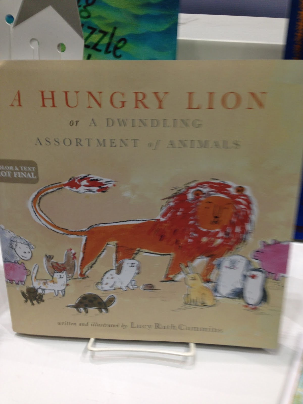 Sorry about the slight blurriness here, which may have been due to my enthusiasm for this upcoming title by Lucy Ruth Cummins. No spoilers — let me just say that this story features a ravenous lion, several adorable (and unsuspecting) friends, and more than one unexpected turn of events. If you know me (and my book, UGLY FISH), you know how much I love surprises, not to mention dark humor. This book has both, and then some!