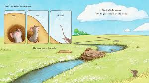 Through the spring, summer, fall, a little mouse pops out of his hole each morning and goes off into the wide world. When it’s finally winter, he retreats back into his warm hole, fixes himself a hearty feast, and snuggles up under his blanket with a good book.