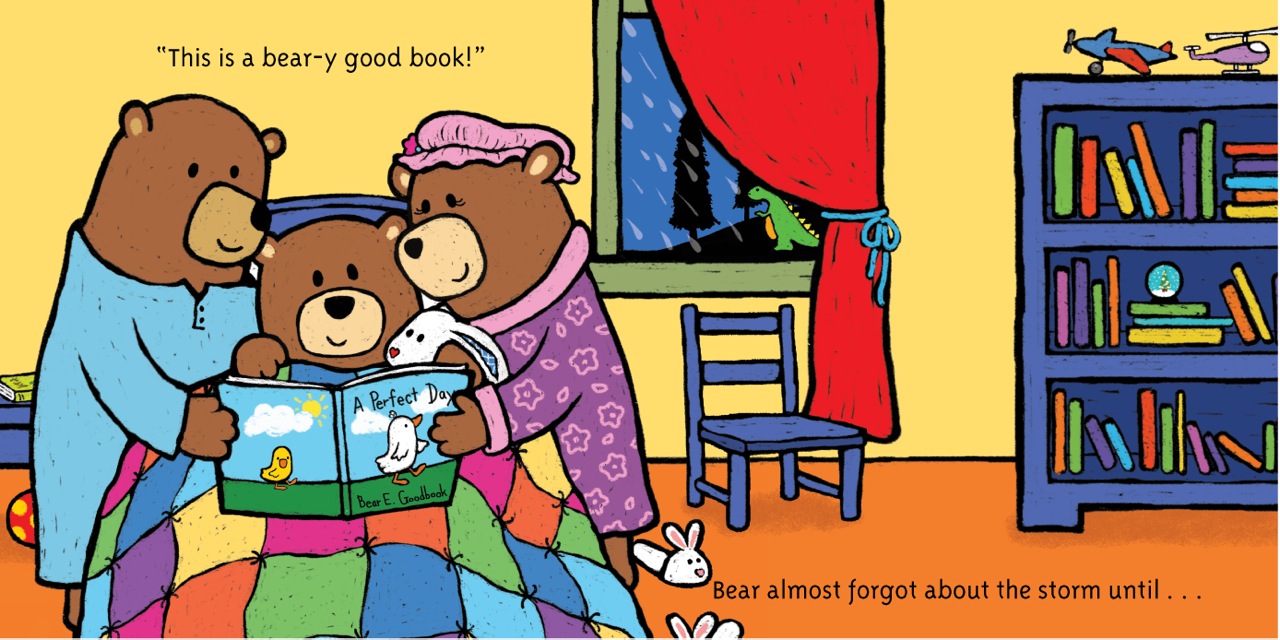 "Readers will appreciate the graduating reassurances that range from self-soothing to group hugs...Youngsters will empathize with Bear and derive comfort from the loving togetherness his family displays while keeping the storm at bay. " --Kirkus Reviews