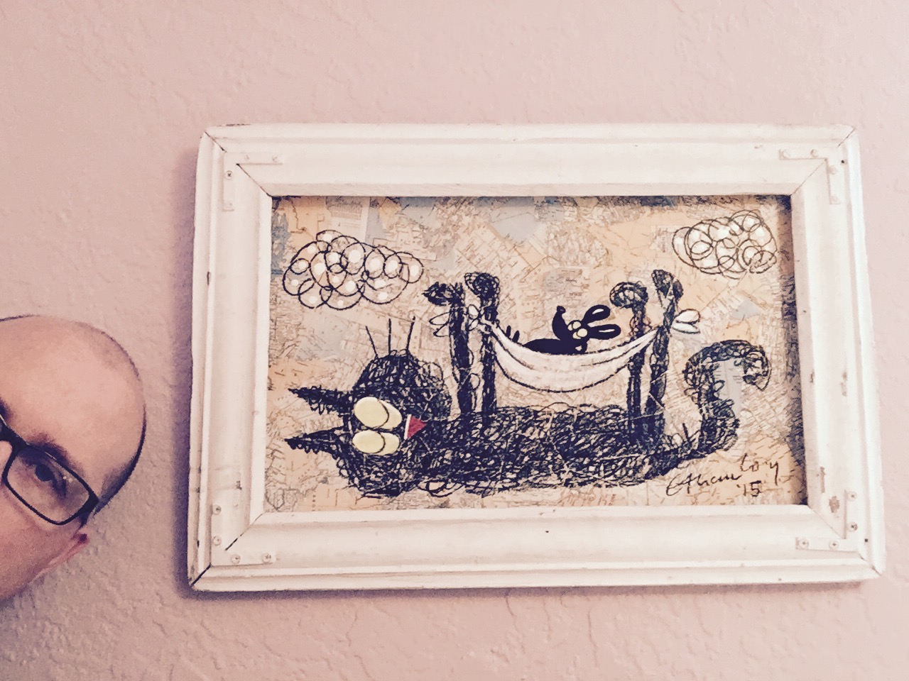 EL: This is a mixed media painting that hangs in my studio. It is of Scribbles and Ink. My Scribbles and Ink books are being developed into a web/TV series with WGBH and PBS. But until I get the papers to sign I have to wait and see. Animation is fun, but it takes a L-O-N-G time to get things going.