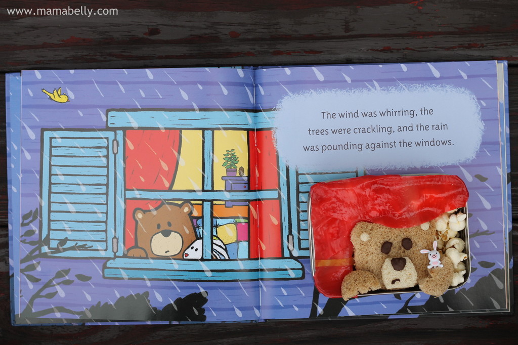popcorn to snack on while waiting out the storma big fruit leather curtain to hide under and a Bear and Floppy sandwich with chocolate decorations