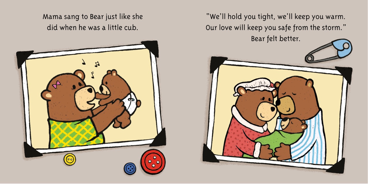 Even though Bear is scared of the storm at first, the storm is over before he knows it, thanks to a familiar song, kiss, and tickle.