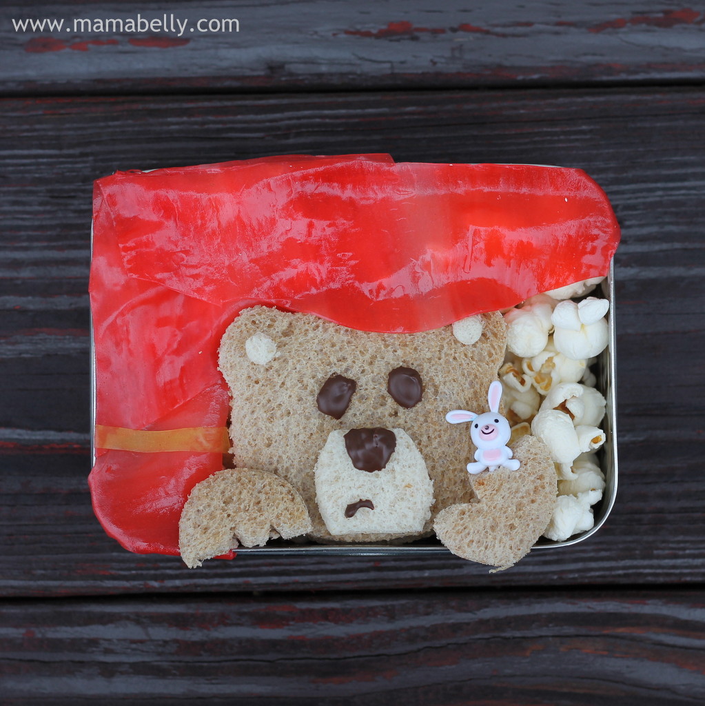 Oh, Bear! You're so modest. Thanks for joining us today. Will you please stay for lunch? Our caterer, Nina of Mamabelly's Lunches with Love, has prepared an adorable Bear-and-Floppy bento lunch just for YOU!