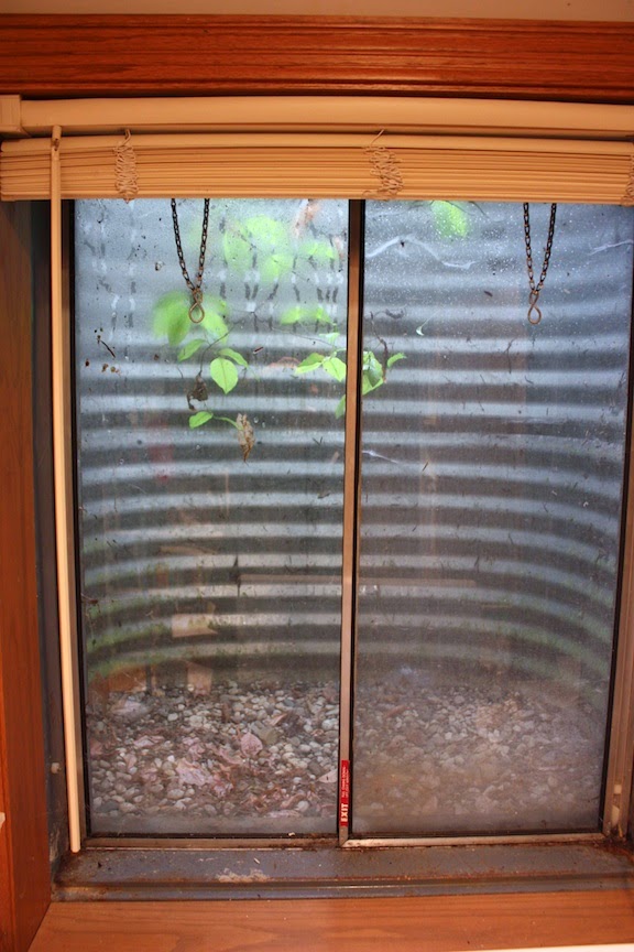 The worst thing about working in a basement is that there’s next to no natural light. I need light. I’m one of those folks that gets depressed when winter rolls around, because the light is gone and will be gone for a long time. So working down here is a challenge in that respect. But there are two covered window wells that let in a sliver of daylight down here. And in this one over my desk, somehow some greenery has made its way down into the darkness, as if to say, “hey, dude.” I appreciate that.