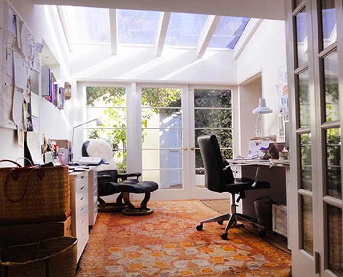 When we moved into this house there was a perfect spot with a full skylight for my art studio. In summer it's too bright and I need to shield my monitor, but it's ideal for painting. French doors open to a small walled patio. I like to listen to podcast stories like This American Life, Reply All, and Here's the Thing while I'm painting. I think doing so keeps the judging part of my brain busy and gives free rein to the creative part.
