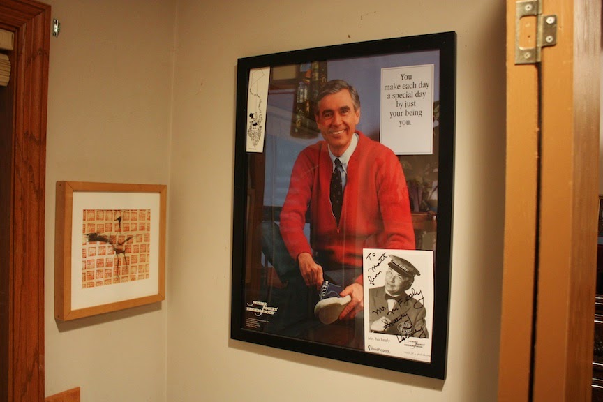 By my computer desk hangs a poster of one of my biggest heroes, Fred Rogers. (And his pal, Mr. McFeely! Speedy Delivery!) He was one of the finest human beings to ever live. I could really go on about him, but I won’t. But one thing… I’m usually afraid to meet my heroes. Or I’m just not interested in meeting them—finding out what they’d be like in “real life.” Him, I would’ve loved to meet. I think about that a lot. I wish he were still here. I wish someone like him were here. But there’s no one like him. When I’m feeling down, jealous, angry, sad, nervous, negative, etc. I like that I can glance up at this poster, and it serves as a sort of reminder. That life doesn’t need to be so petty and small.