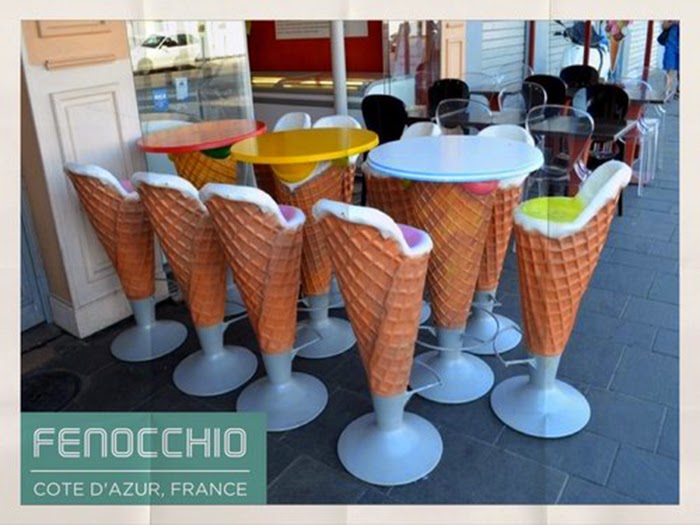 Fenocchio's in Nice provided inspiration for the ice cream cone chair where Hudson has his afternoon goûter.