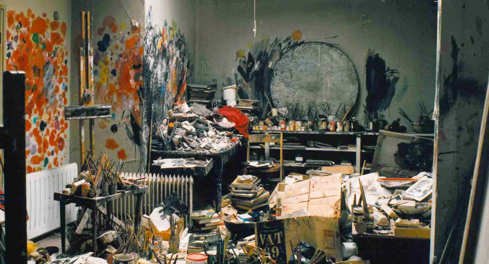 Welcome to Thunderdome! You might find this difficult to believe, but I actually cleaned up before you got here. I’m not kidding. When I’m working, I get so wrapped up on my work that I’m more concerned about the work than the cleaning up down here. But the mess does grow to a point where it becomes hard to find stuff, you can’t walk much without stepping on something, etc. and it actually gets in the way of getting work done. Or my wife gets totally annoyed by it. (We do have to walk through here to get to the laundry room!) Then I have to clean up the place. Having a messy studio can get a little uncomfortable at times. If I get too stressed about it, I think about Francis Bacon’s studio. Then I feel less stressed.