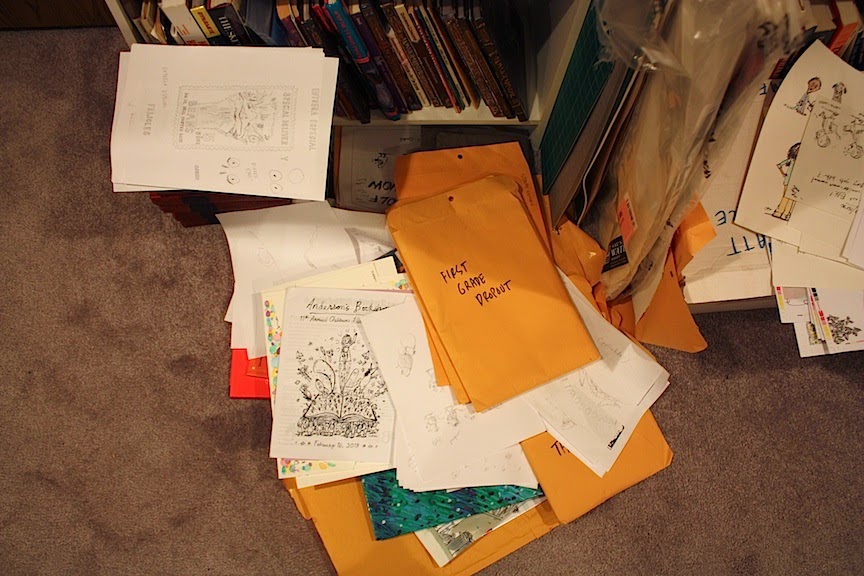 Here's a pile of sketches from finished books, and some other things here, waiting to be filed or thrown away. To be determined. I know, I know… I’m working on it!