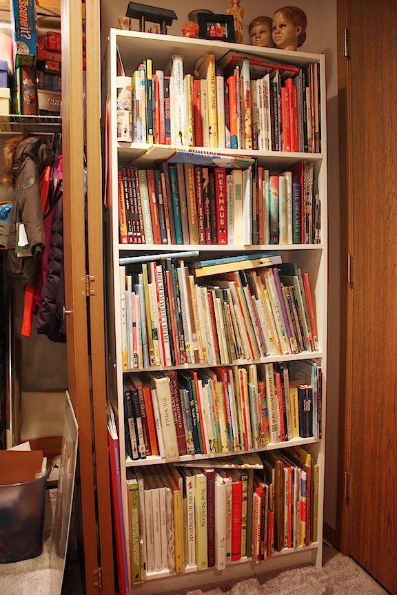 Here’s where I keep all the other books I love. Picture books, graphic novels, novels, image ref books, dictionary and thesaurus, art books, etc. I can fit most of my favorite stuff on this one shelf. There is some run-off onto another shelf or two, but I try to limit my hoarding to this one shelf. I went through and weeded some stuff not too long ago. And I have bought more stuff since.