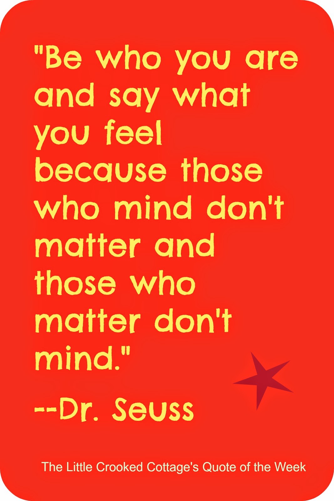 "Be who you are and say what you feel because those who mind don't matter and those who matter don't mind." --Dr. Seuss