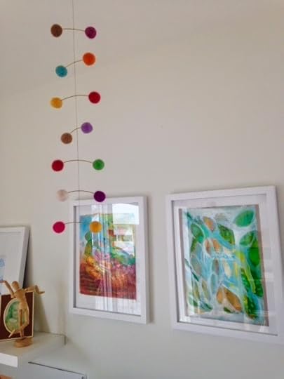 I have a bunch of mobiles in my studio. I love looking up and seeing them hover over me.