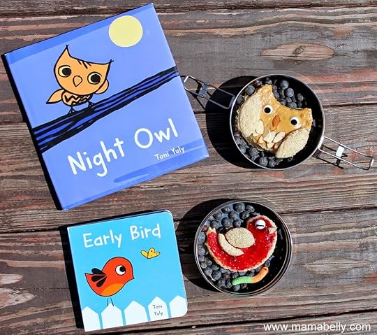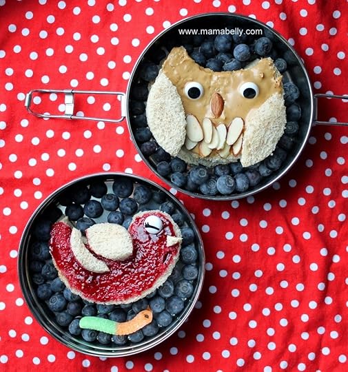 Nina from Mamabelly has prepared a lunch for both early birds and night owls everywhere:Early Bird's lunch includes blueberries, a raspberry Early Bird sandwich, and of course an Early (gummy) Worm Night Owl's lunch includes blueberries as well (it has to be fair), and a peanut butter and almond Night Owl sandwichNina | Mamabelly's Lunches with Love web: www.mamabelly.comfacebook: www.facebook.com/MamabellysLunchesWithLovetwitter: @LunchesWithLove