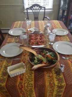 Once a month, the Cottagers meet for a Sunday brunch to discuss our works-in-progress and latest adventures. We're also getting ready for a blizzard, so for today's brunch, we made warm comfort food--lasagna, freshly baked bread, and brownies.