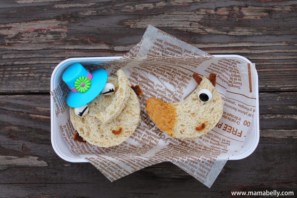 Nina from Mamabelly.com made a Petal and Poppy lunch - of course with penguin! Packed are:a Petal sunbutter sandwicha Poppy peanut butter sandwichand a salad with carrots, grape tomatoes, cheese and cherry flavored cranberries.