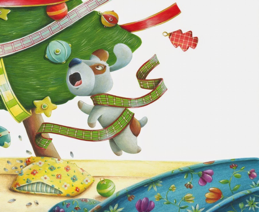 Sleeping Bear Press is an absolute joy to work with. They sent complete sketches to me and asked me about them all the way through. So, even though I didn’t select Bruno (who lives in Normandy, by the way) I felt very included. And, I love so many of the details he added --- like the little gingerbread boy clinging to the tablecloth as the dogs upset the room.