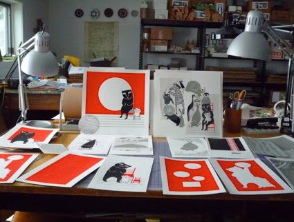 You are visiting me when I’m working fast and furious towards a tight deadline. All the studio tables are full. It is wintery and quiet inside but noisy with images and thoughts.