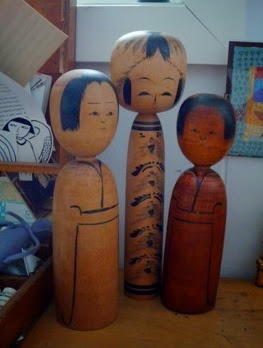 These are old Kokeshi dolls. They were given to me by a second cousin who brought them back from Japan. My favorite one is on the right, this one has a childs’ hands and play in it. It’s slightly worn, its wood color darker, richer, friendlier.
