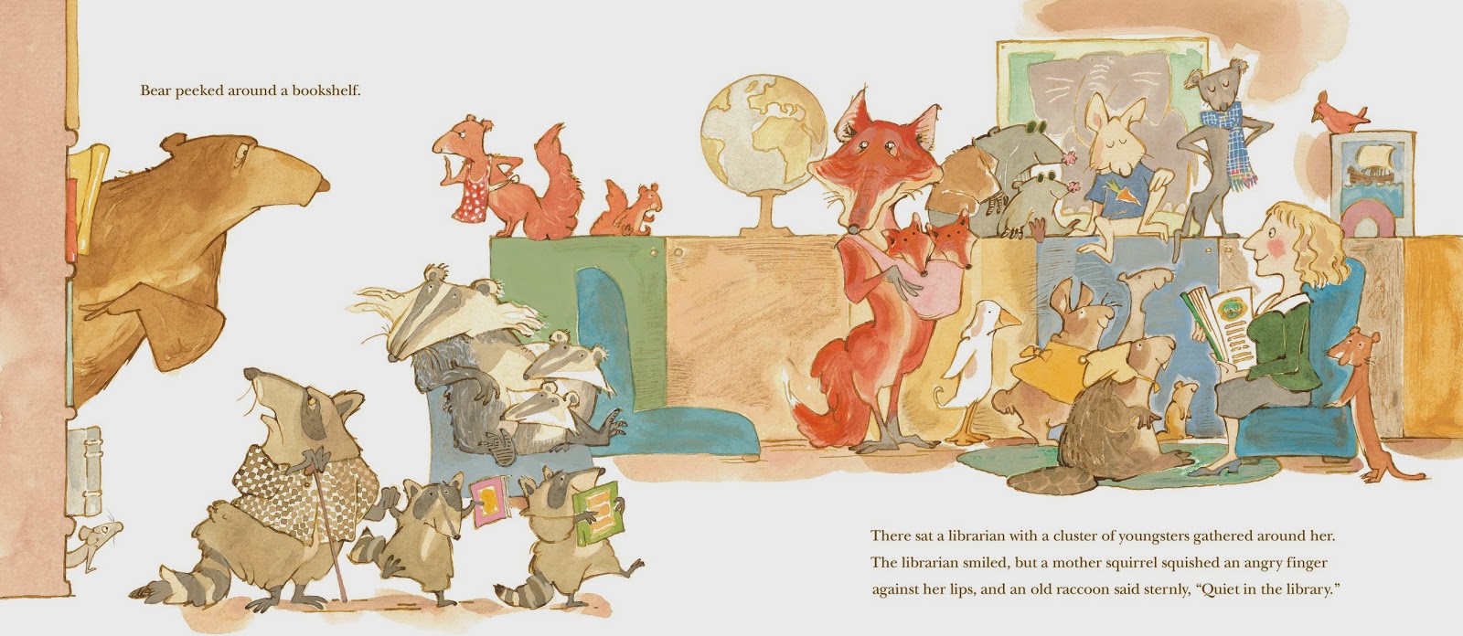 A LIBRARY BOOK FOR BEAR. Text copyright © 2014 by Bonny Becker. Illustrations copyright © 2014 by Kady MacDonald Denton. Reproduced by permission of the publisher, Candlewick Press, Somerville, MA.What is your favorite sound?