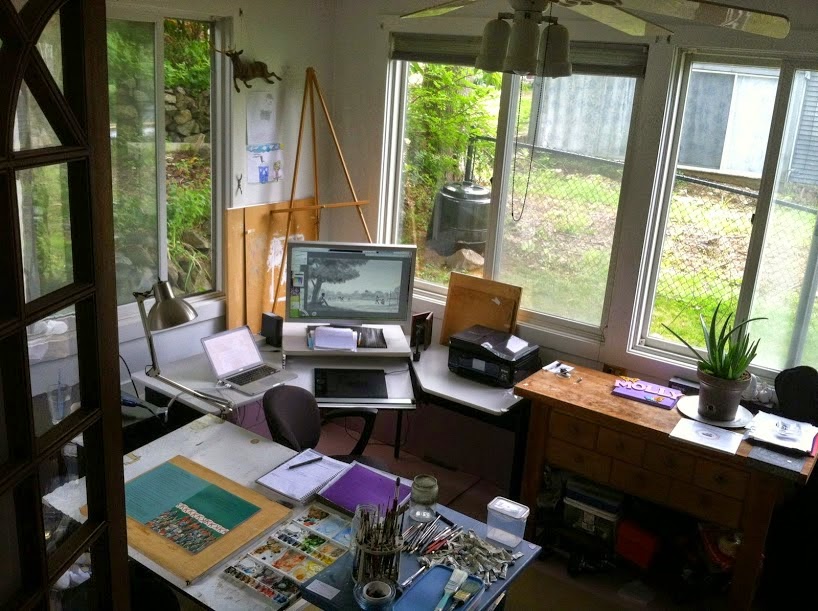 By the window, you can see the relatively new part of my studio—I've started learning how to draw on my computer. Here, let's take a closer look. . . .