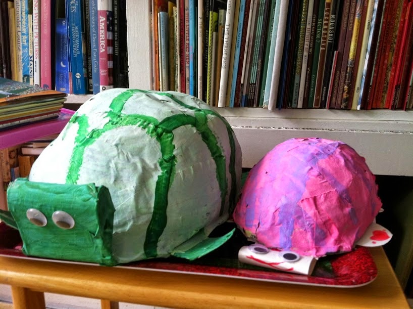Sometimes I make turtles out of papier mache. Just kidding, my daughters made these. Aren't they awesome?