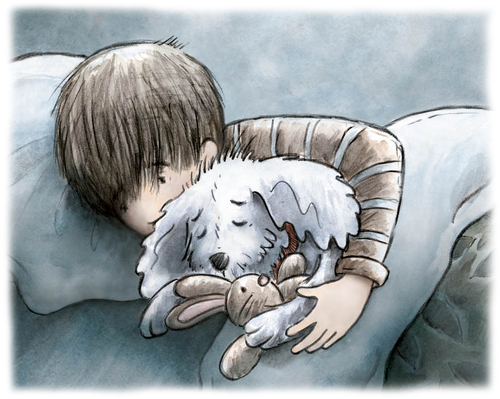 "The book’s warmth and appeal come from the artwork. Pencil drawings are tinted with a soft palate of watercolor washes and digitally added colors. And while the soft browns, blues, greens, and grays create a subdued, rather melancholy tone throughout the book, both the boy and his lovable dog are smiling by the final scene."