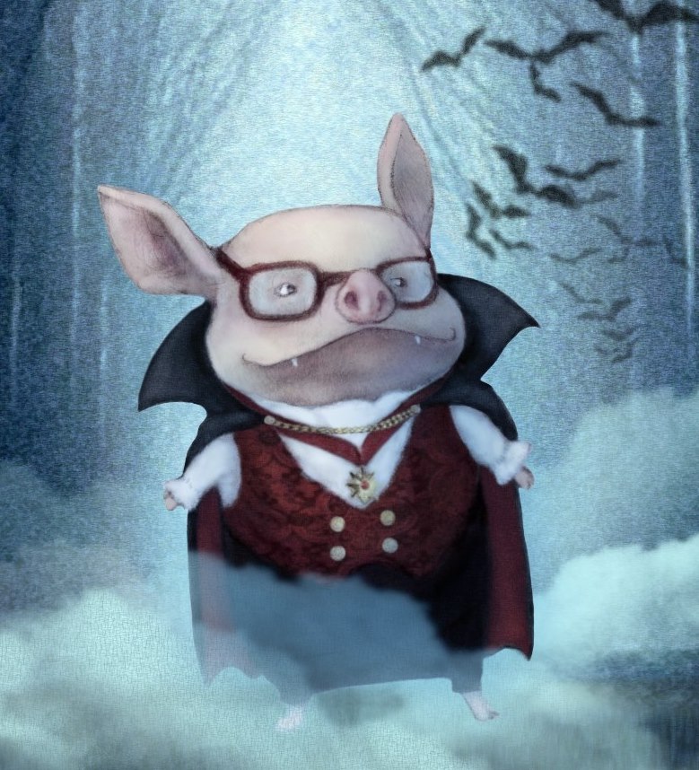 KC: Mr. Pig, you look devilishly handsome in that Dracula cape.